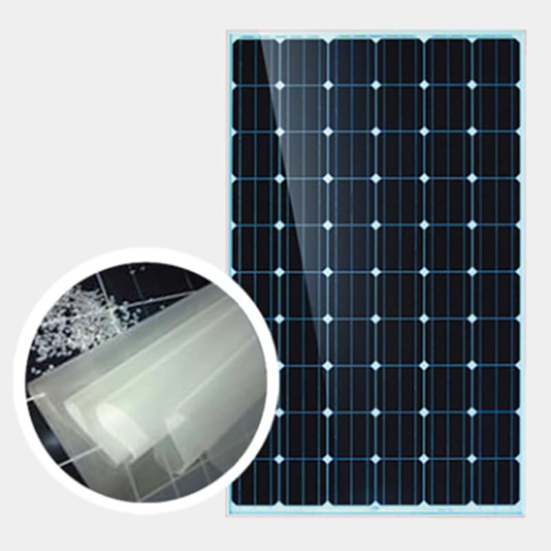 EVA膠膜系乙烯-醋酸乙烯共聚物( EVA )添加各種必要助劑 制成,在太陽能組件封裝使用中主要作用是:支持和固定太陽能電池片;增 加太陽光透過率;隔離有害的環境因素;電絕緣的作...
